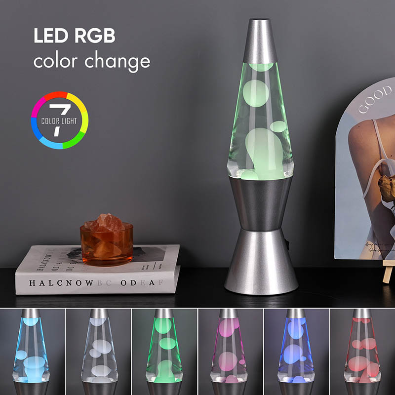 15 инча РГБ ЛЕД лава лампа има 7 промена боја на дну. боја је бела са лавом.