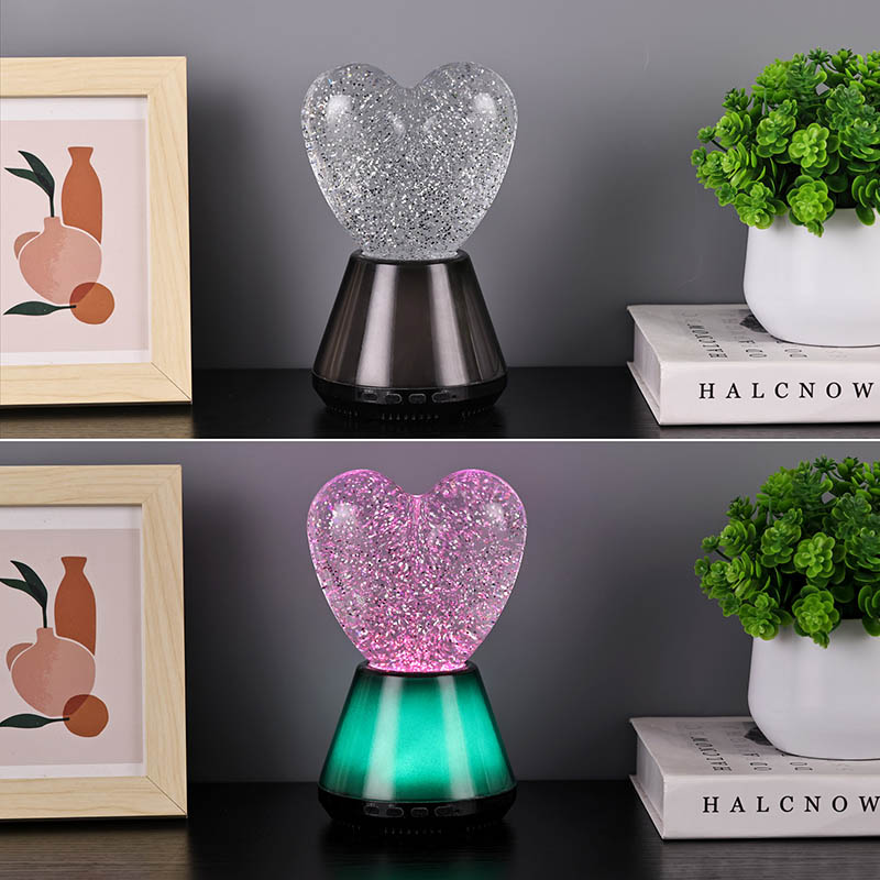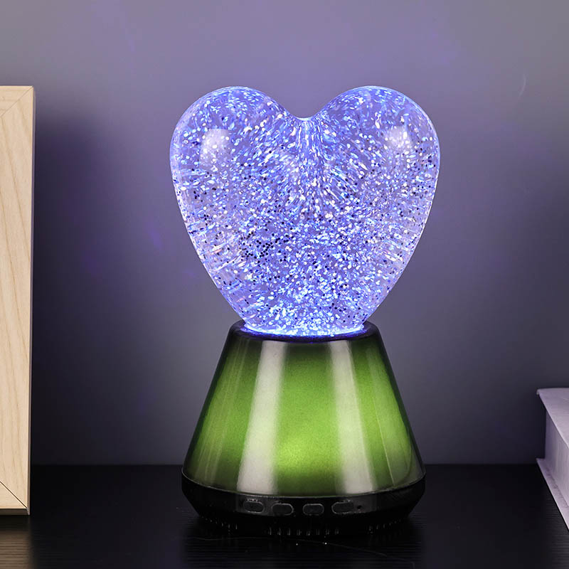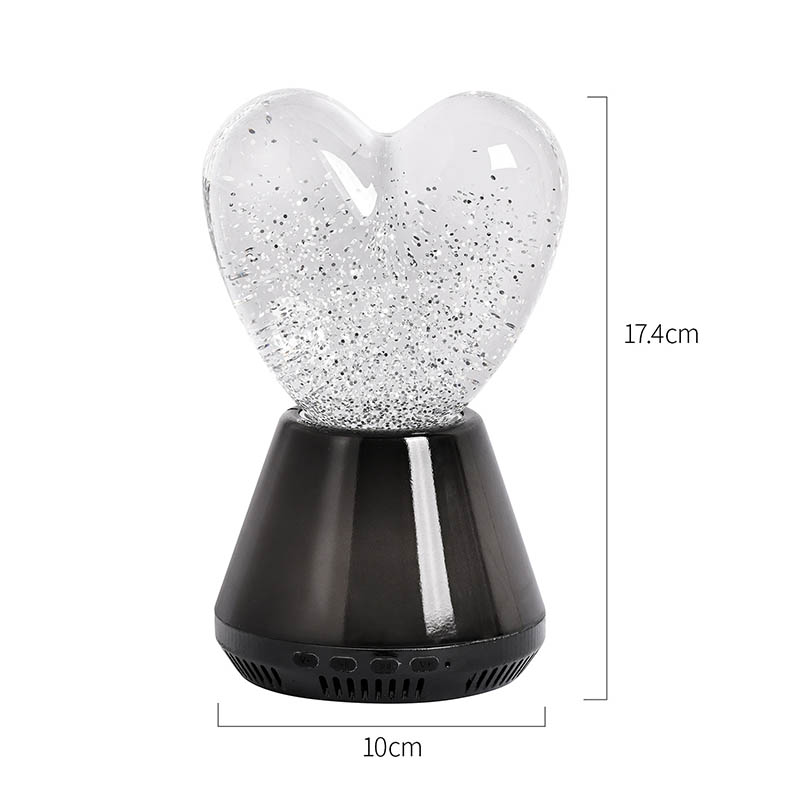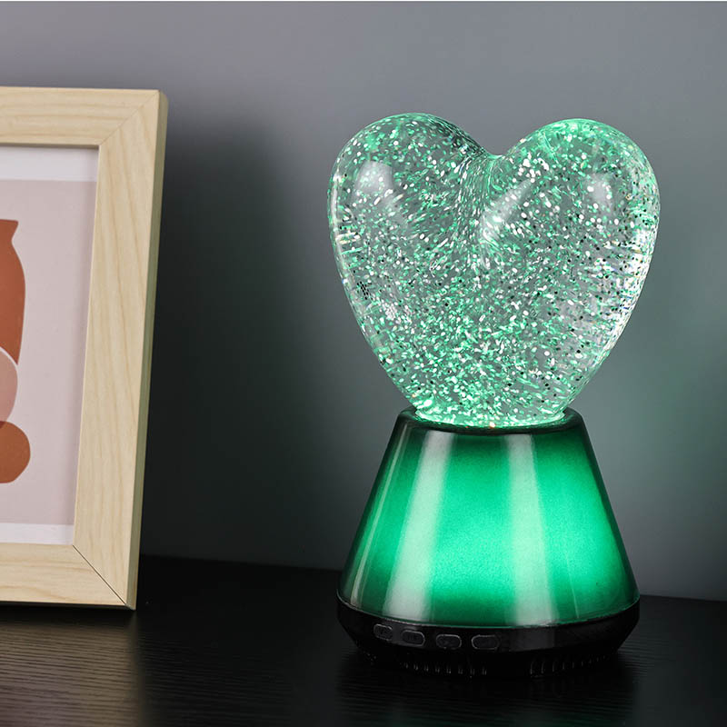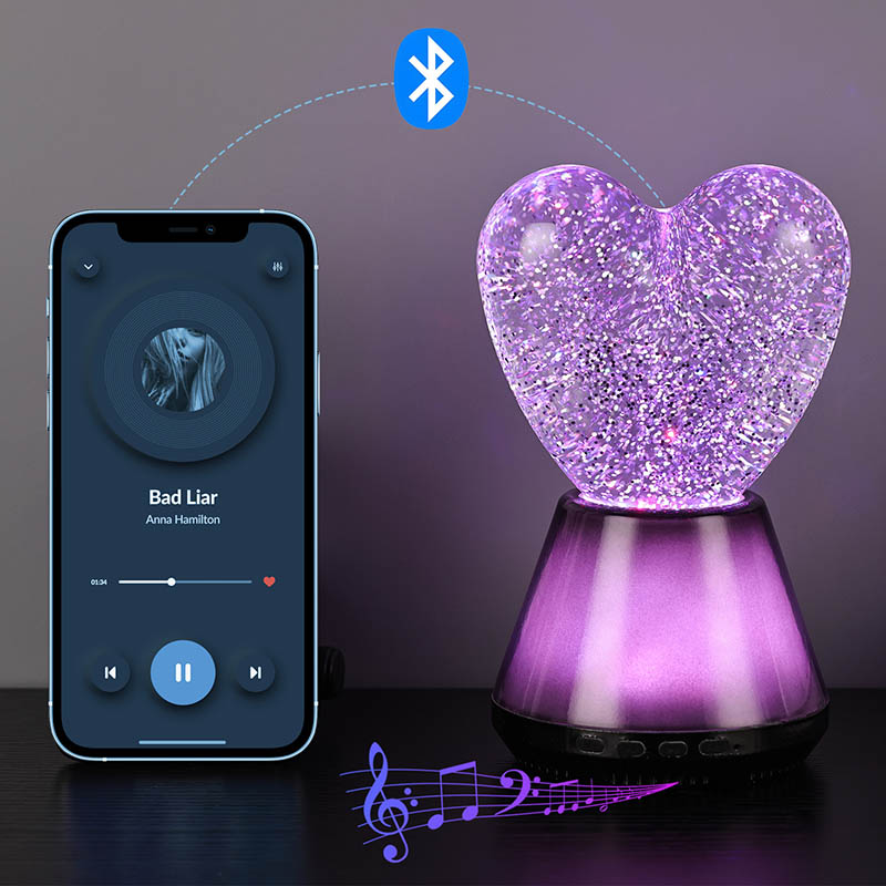 Унутрашњост Блуетоотх контролног лед светлуцавог ноћног светла испуњена је мистериозном течношћу у којој лебде безброј светлуцавих шљокица. Када се лампа укључи, течност ће полако тећи унутар стаклене кугле у облику срца, стварајући ефекат из снова. Ове шљокице изгледају као расуте звезде, нежно лебде у течности, дајући људима осећај да су на звезданом небу. Било да је дан или ноћ, са сјенилом срца може донети изненађење и радост деци, омогућавајући им да ослободе своју машту у сањивом осветљењу.