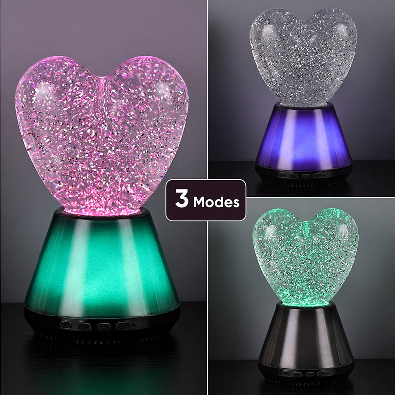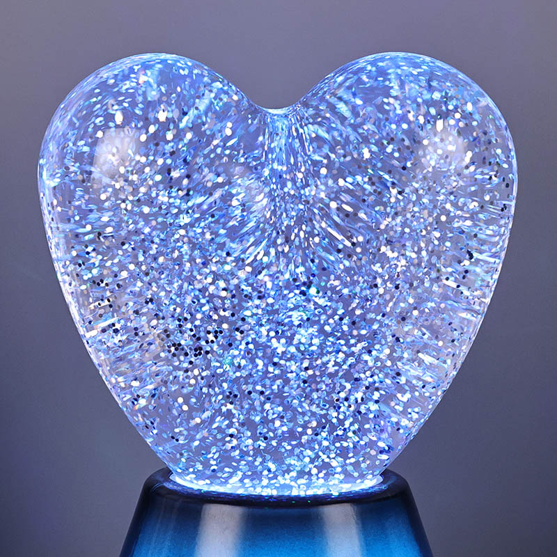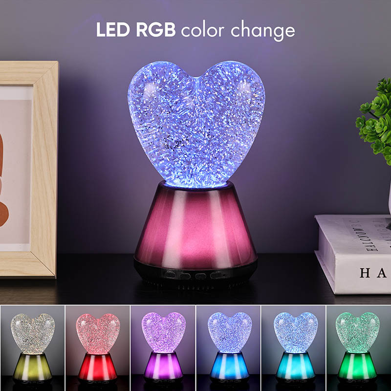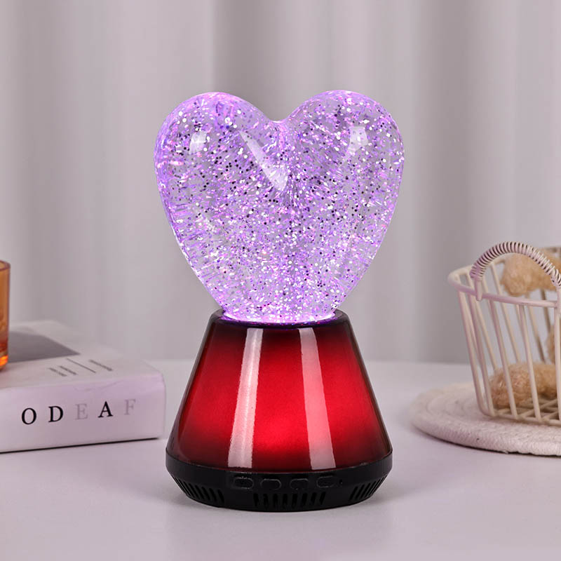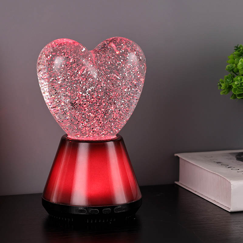 Унутрашњост Блуетоотх контролног лед светлуцавог ноћног светла испуњена је мистериозном течношћу у којој лебде безброј светлуцавих шљокица. Када се лампа укључи, течност ће полако тећи унутар стаклене кугле у облику срца, стварајући ефекат из снова. Ове шљокице изгледају као расуте звезде, нежно лебде у течности, дајући људима осећај да су на звезданом небу. Било да је дан или ноћ, са сјенилом срца може донети изненађење и радост деци, омогућавајући им да ослободе своју машту у сањивом осветљењу.