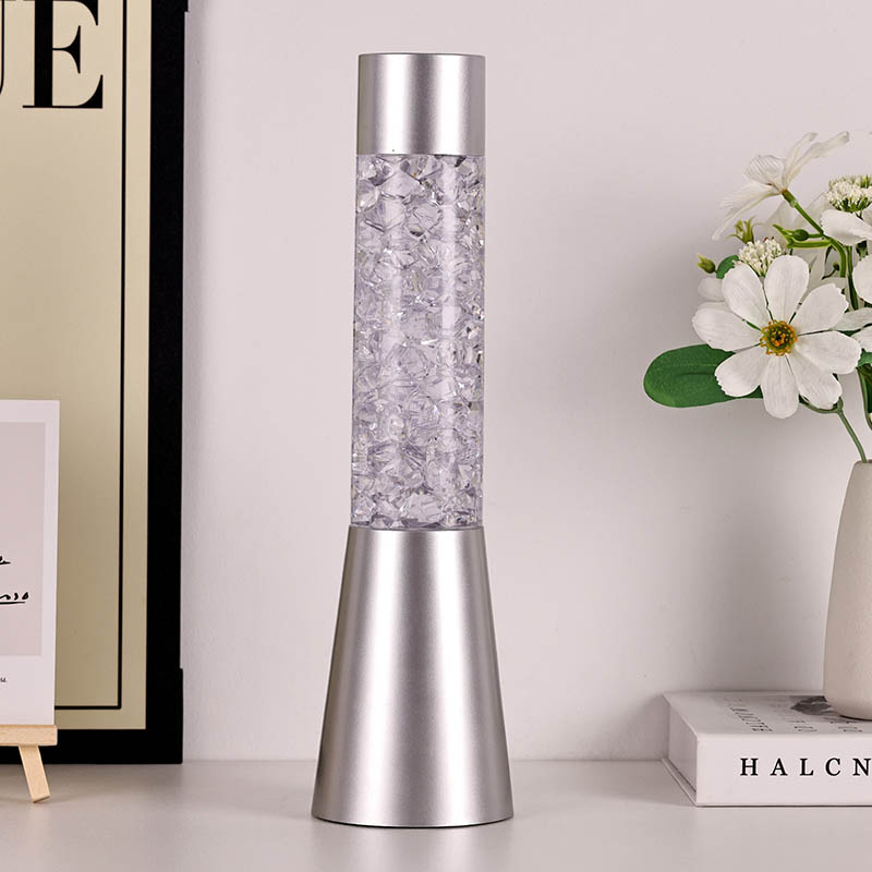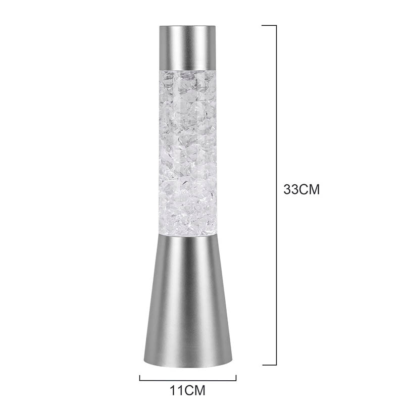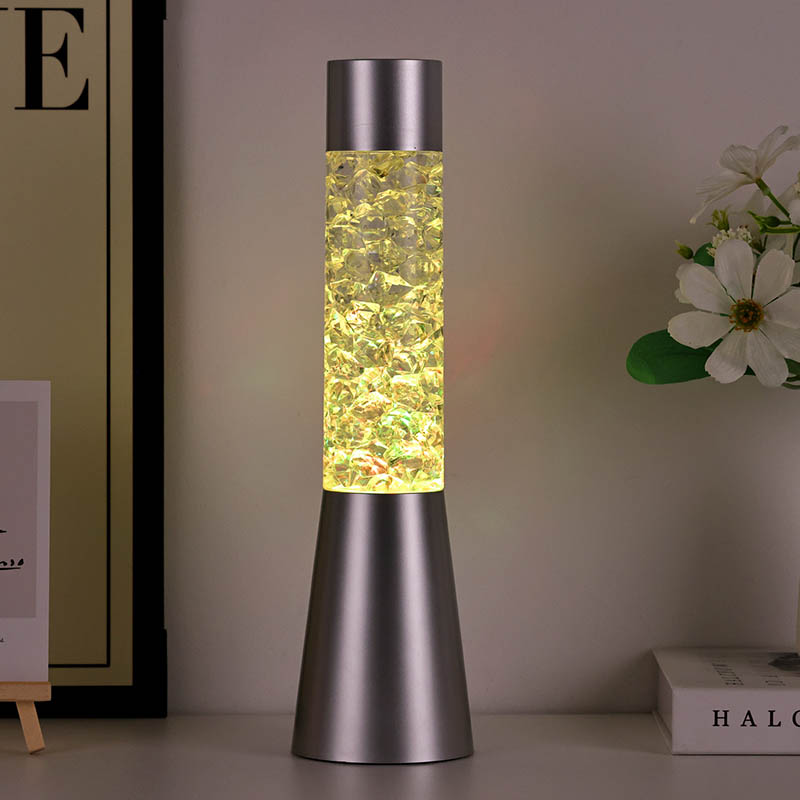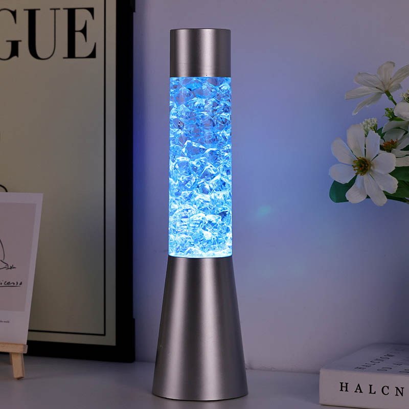 Течно светлуцаво ноћно светло које мења боју у облику леда има елегантан и модеран дизајн са металном базом и провидним горњим делом испуњеним шареним комадима налик кристалима. Подножје лампе је дизајнирано да буде стабилно и елегантно, употпуњујући сваки стил декорације дома. Прозирни део садржи шарене делове који се нежно померају, стварајући очаравајући визуелни ефекат. Лампа је доступна у три различите варијације боја – црвеној, плавој и зеленој – што вам омогућава да изаберете савршену нијансу која одговара вашем унутрашњем декору.