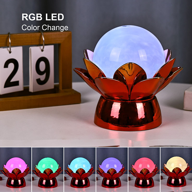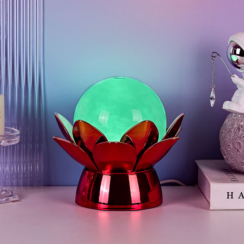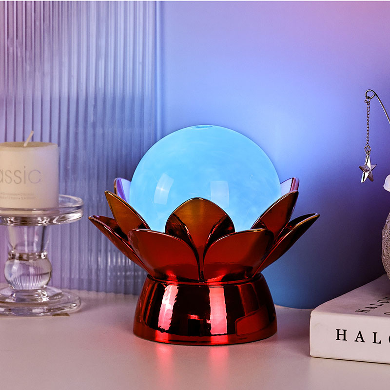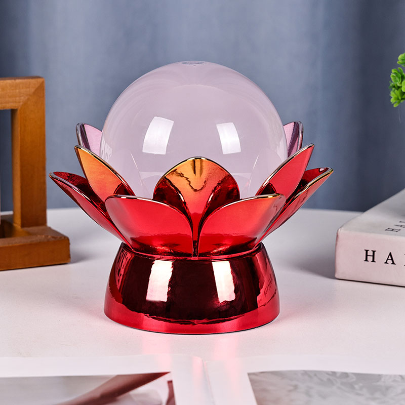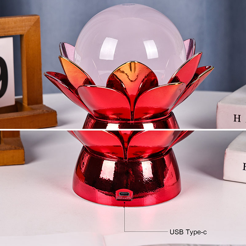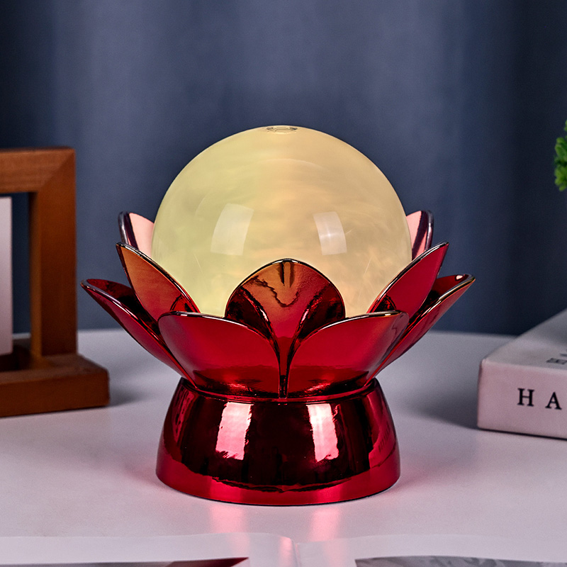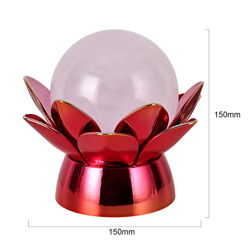 Израђена од висококвалитетних материјала, база је направљена од полираног метала са упечатљивом црвено-златном завршном обрадом која лепо рефлектује светлост, додајући дубину и богатство свом изгледу. Дизајн лотоса не служи само као естетска жаришна тачка, већ носи и симболично значење укорењено у источњачким традицијама – представља просветљење, отпорност и хармонију. Рефлектујућа површина побољшава визуелни утицај, чинећи да лампа сија чак и у условима слабог осветљења.