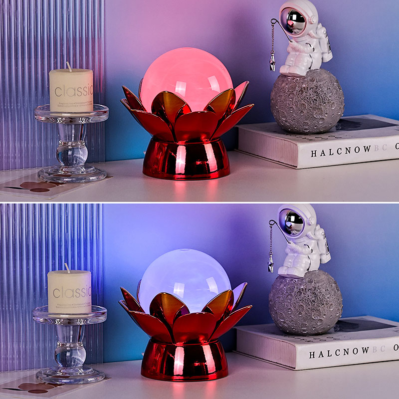 Унутар глобуса, напредно ЛЕД осветљење нуди вишебојно осветљење, омогућавајући корисницима да прилагоде расположење меким нијансама као што су топла бела, нежна ружичаста, умирујућа плава и златно жута. Функција промене боје може се контролисати ручно или подесити на аутоматски циклус, пружајући динамичан и задивљујући приказ који се временом развија. Ово амбијентално осветљење је идеално за спаваће собе, дневне собе, просторе за јогу или као промишљен поклон за вољене особе које цене лепоту и мир.