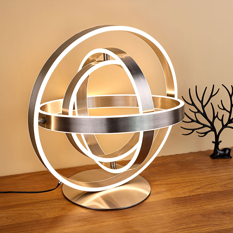 Тхеизузетна лед столна лампасастоји се од више прстенастих ЛЕД лампи, са ЛЕД светлима урезаним у сваку прстенасту периферију. Прстенасти дизајн може да се ротира у сферни облик