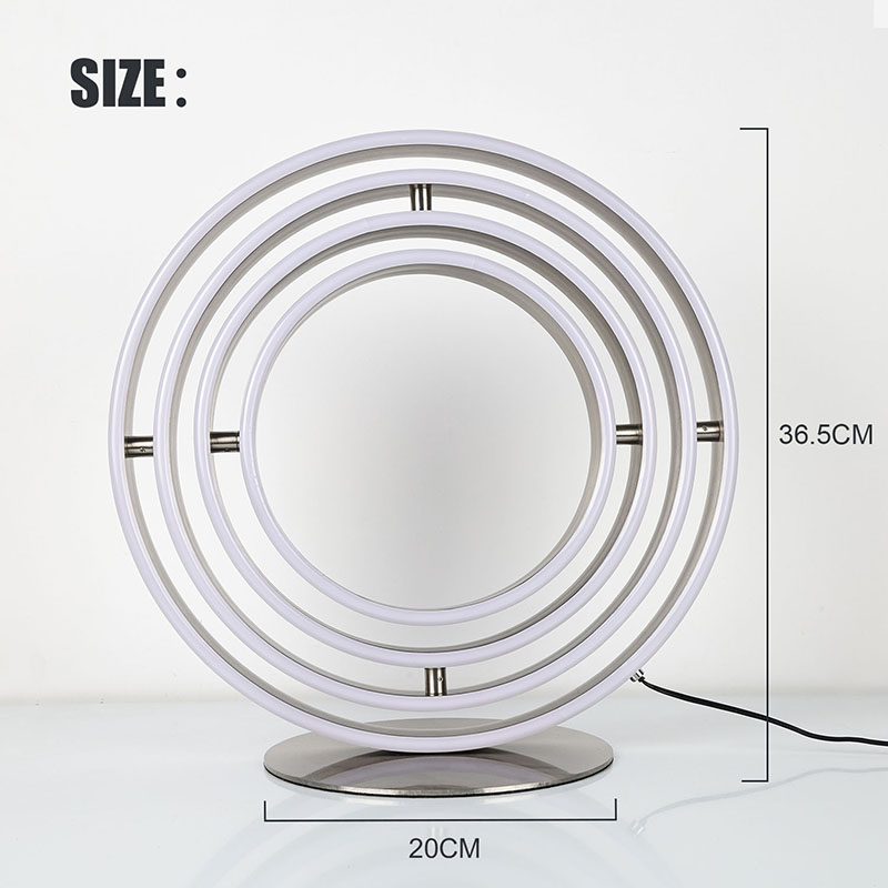 Са једноставним контролама, управљање ЛЕД декоративном стоном лампом са више прстена је без напора. Једноставно га укључите и магија почиње. Лампа је дизајнирана за практичност, осигуравајући да лако можете створити савршено окружење за осветљење за сваку прилику. Без обзира да ли желите да поставите опуштајуће расположење или обезбедите фокусирано осветљење, ова лампа ће вас покрити.