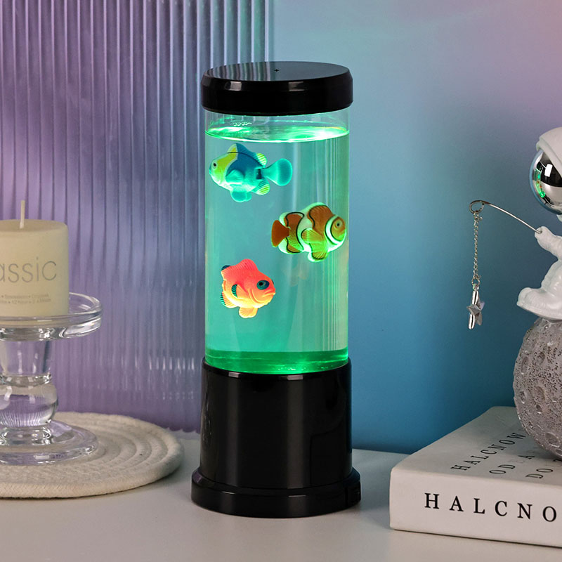 Представљамо очаравајућу ЛЕД лампу за рибу – задивљујући спој модерног дизајна и воденог шарма који доноси магију подводног света у ваш дом. Са својом елегантном црном спољашњошћу, елегантним цилиндричним обликом и задивљујућим унутрашњим кретањем, ова декоративна лампа је више од само осветљења—