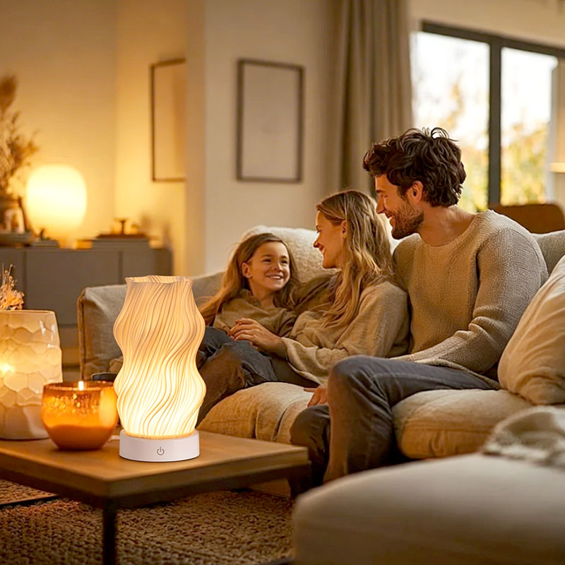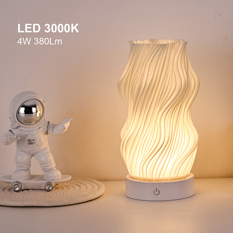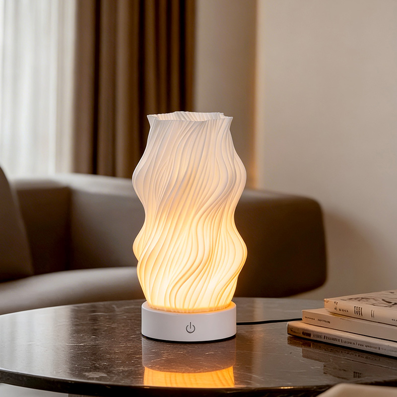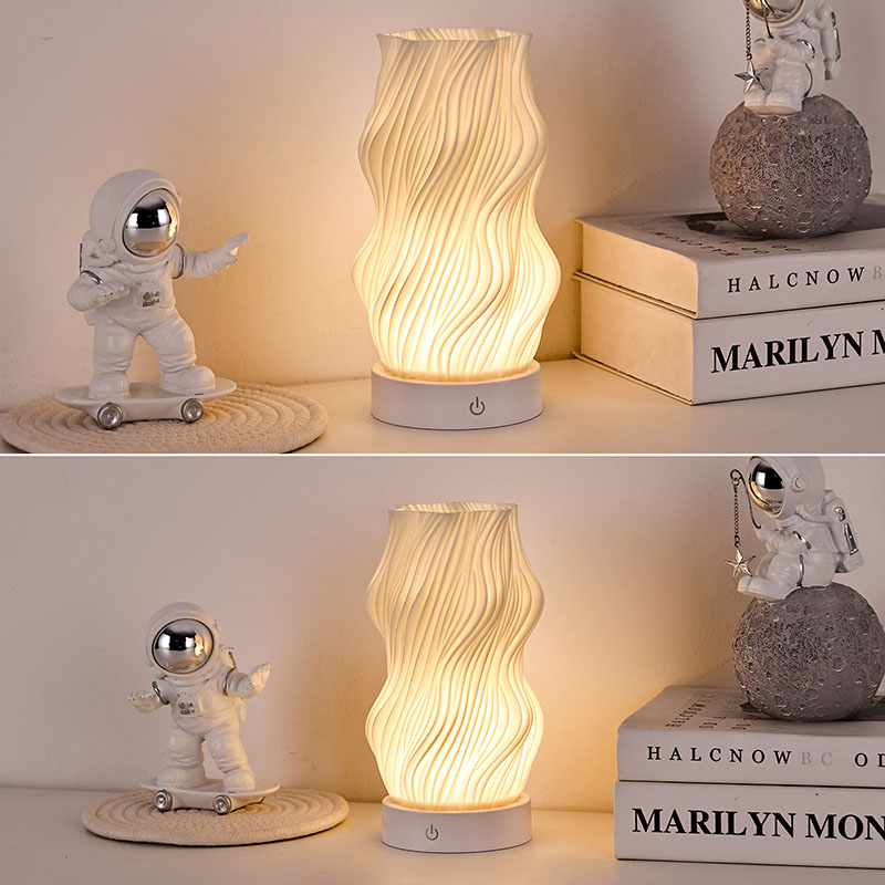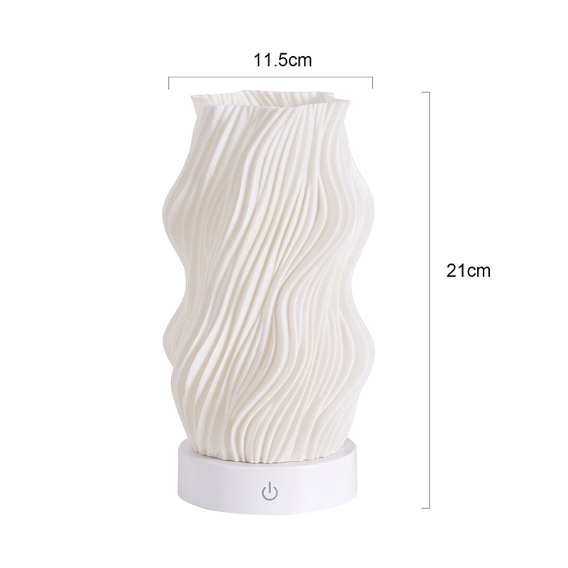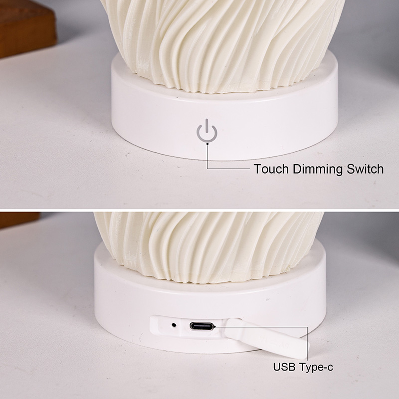 Направљено од врхунске пластике, кућиште столне лампе за ноћно светло пламена је (компактно) и лагано. Не само да је топао на додир, већ се и лако чисти и помера. Минималистички дизајн таласасте текстуре комбинује уметничку лепоту са практичношћу, без напора се уклапајући у сваки стил декорације дома. То је савршен акцентни комад који штеди простор и додаје дашак елеганције вашој соби.
