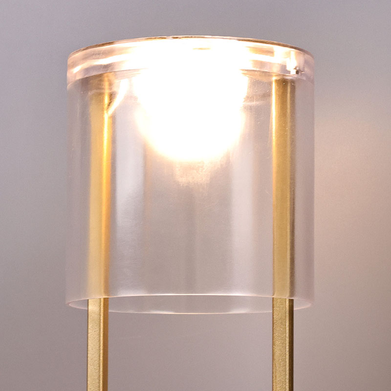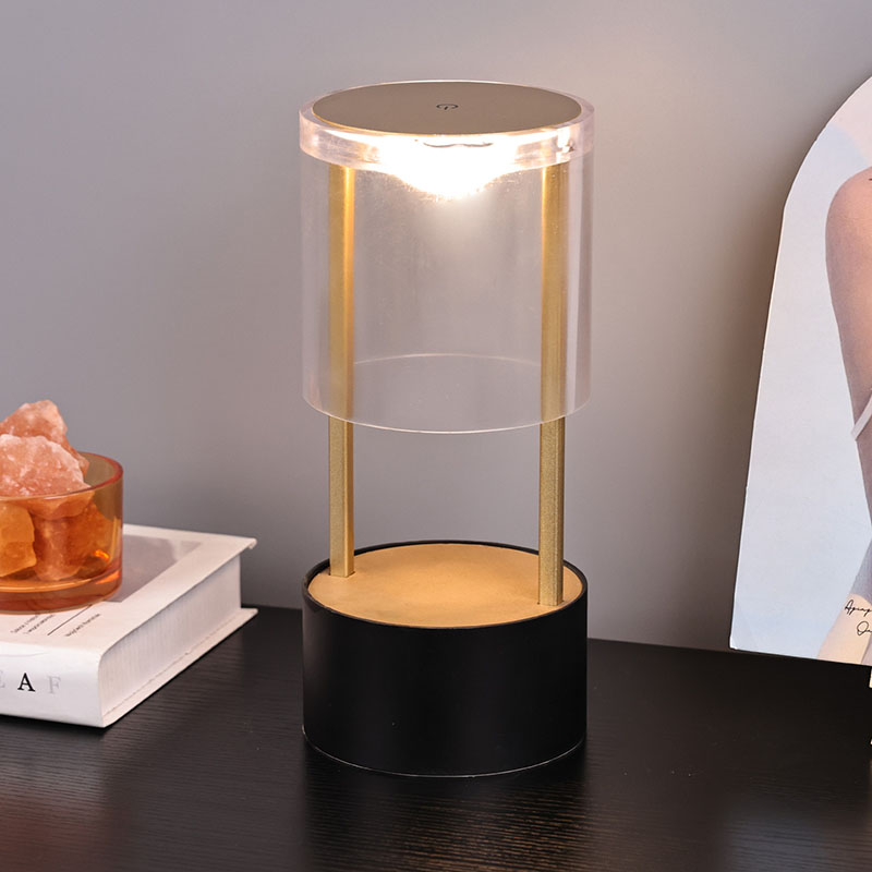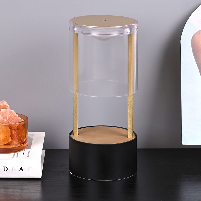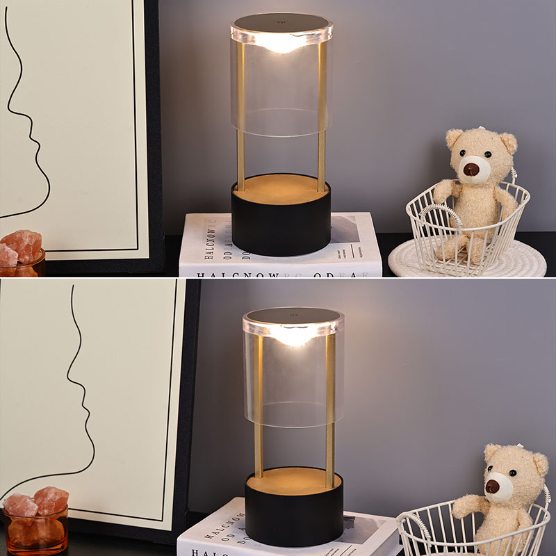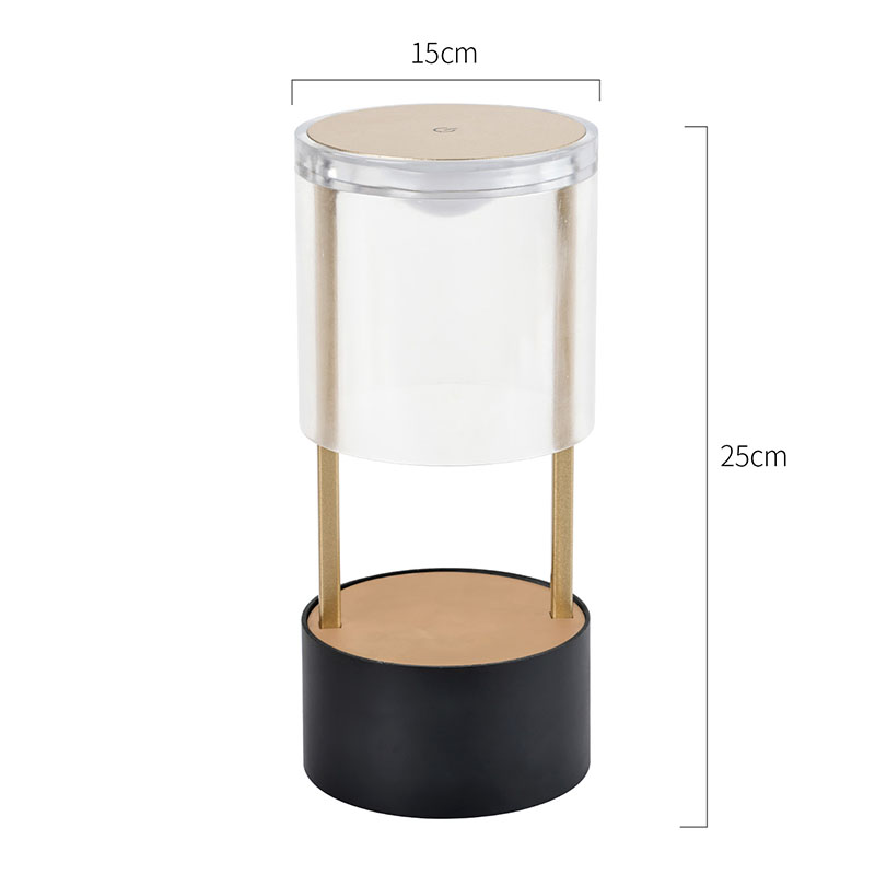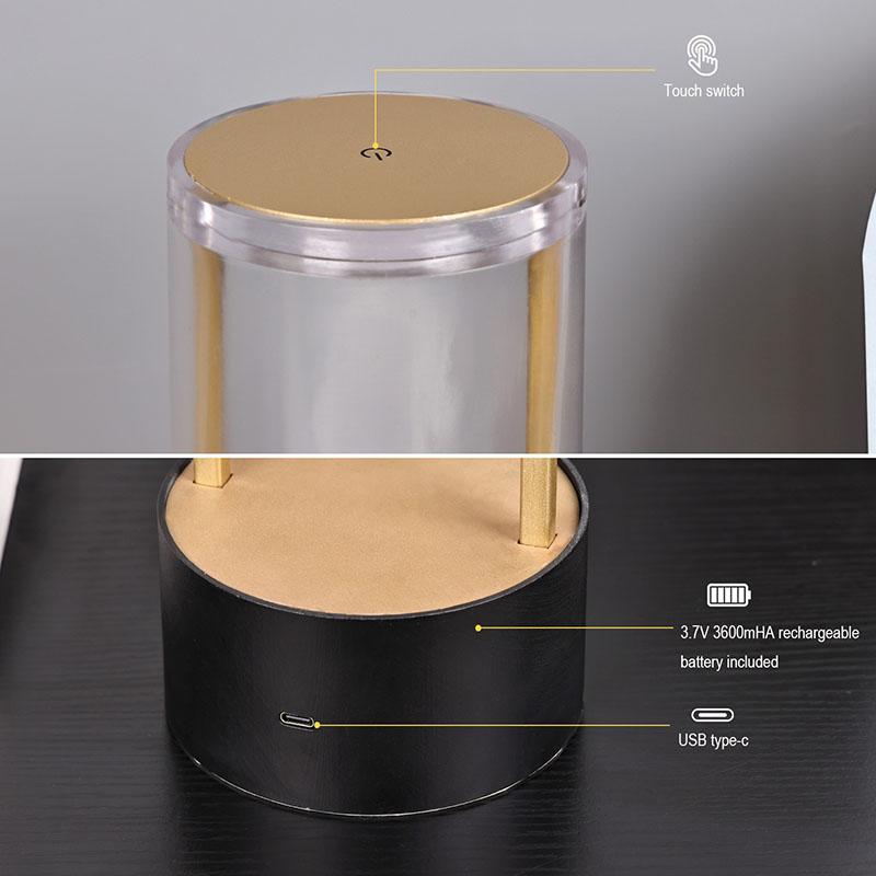 Горњи део мале стоне лампе у стилу Лантерн је прекидач за светло осетљив на додир, са пуњивом главом за пуњење типа Ц на дну. Горњи део је састављен од провидног акрилног поклопца, а дно је метална подлога. Укупна кружна структура омогућава покретно осветљење
