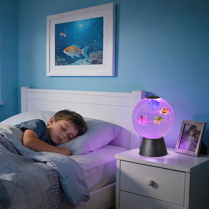 Јединствен акценат у сваком простору, овај рибљи глобус комбинује умирујуће светлосне ефекте са разиграном анимацијом