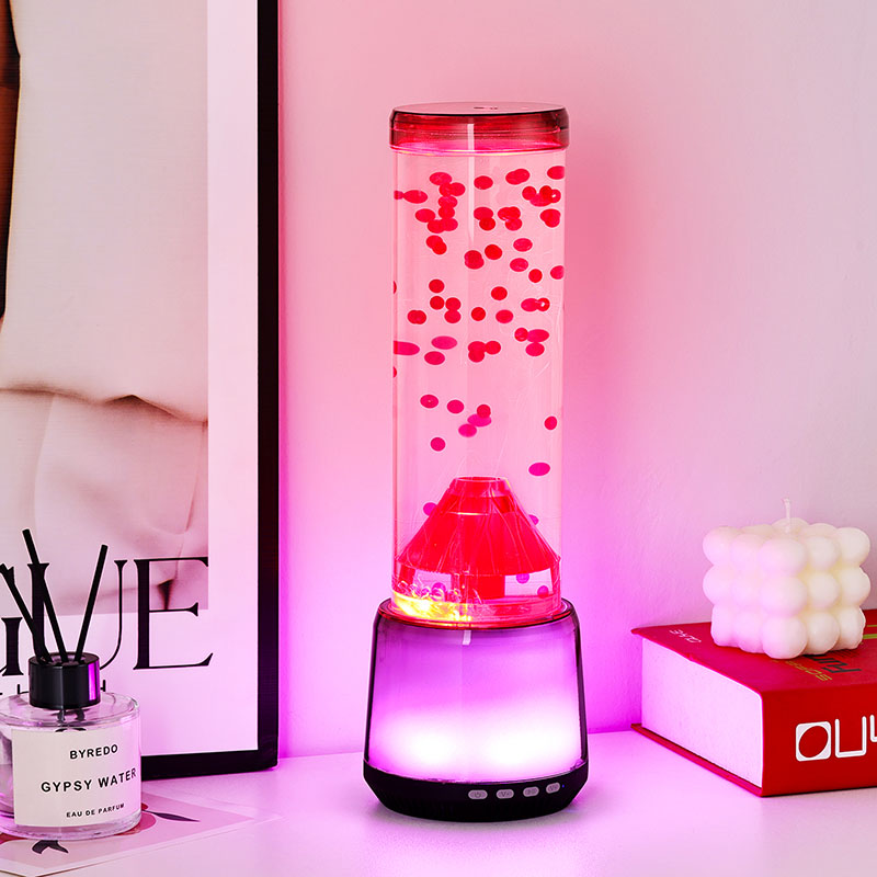 динамика, где се мехурићи црвене боје непрекидно дижу и спуштају, опонашајући природни ток растопљене лаве или благи ток медуза кроз океанске струје. Овај хипнотички ефекат ствара умирујуће