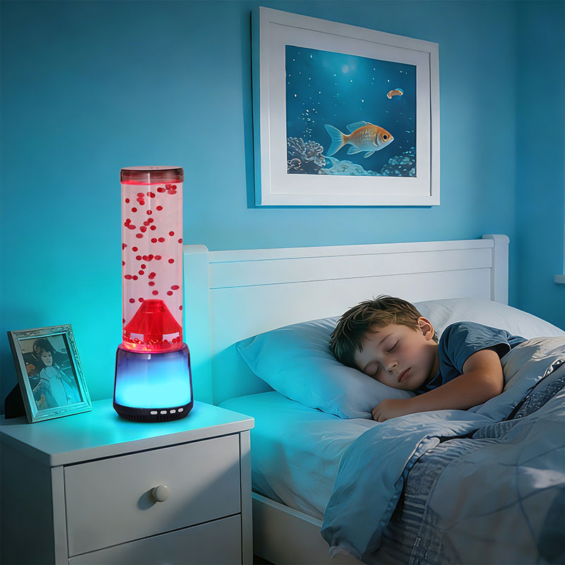 акваријумима, ова иновативна декоративна лампа комбинује умирујуће кретање мехурића који се дижу са живописним,