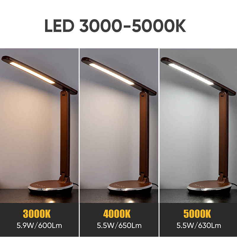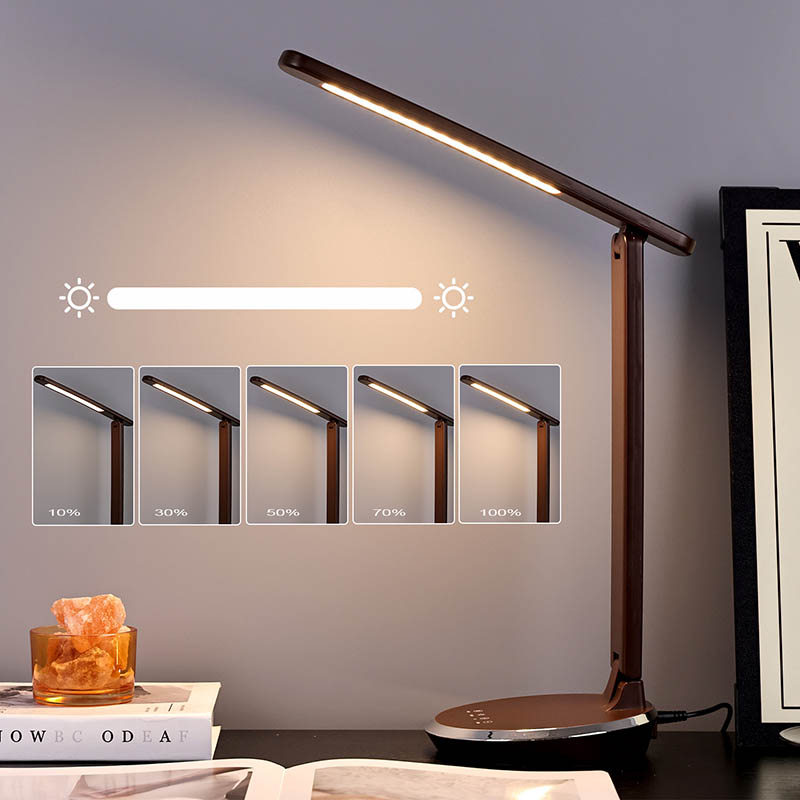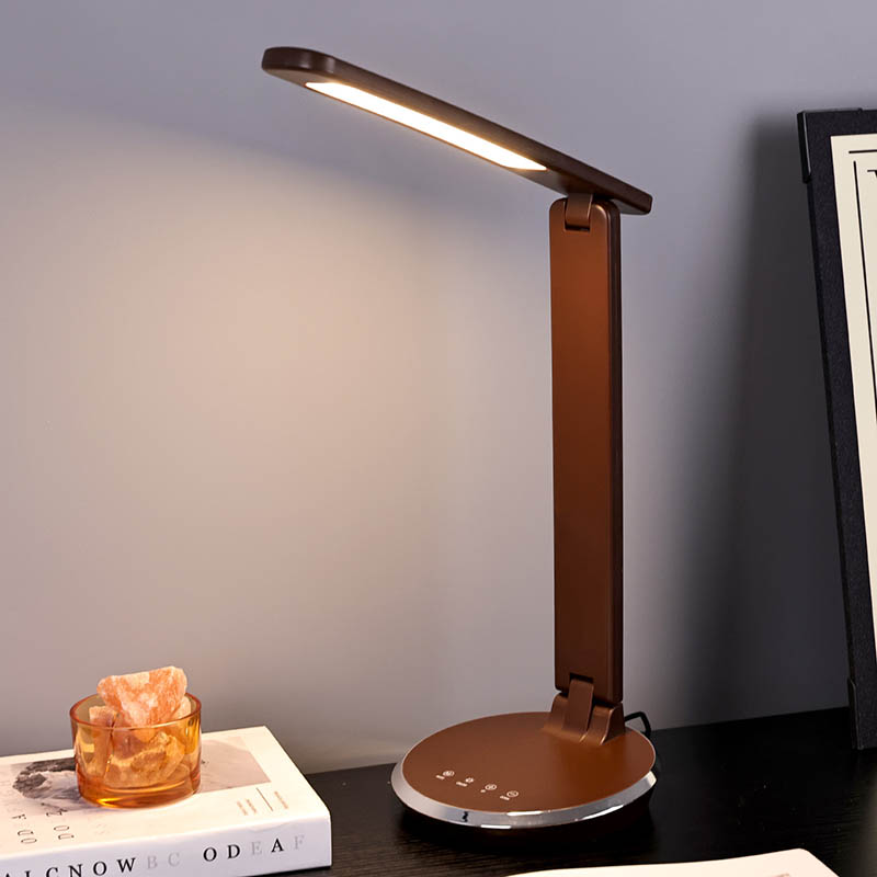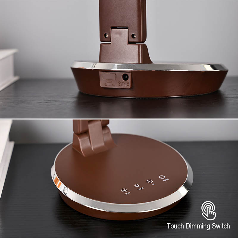 Револуционирајте своје искуство осветљења са нашим модерним ЛЕД столним ЛЕД-ом са УСБ порт пуњачем: 3000к, 4000к, 5000к Подесиве температуре у боји и интензитетИнТродукција: Осветлите свој живот са стилом и софистицираним ером где је дизајн и функционалност коегзистирало складно проћи трансформацију. Из самог извора осветљења до елегантног нагласка који надопуњује ваш радни простор, модерне радне лампе је дуго долазила. Данас вас упознамо са ремек-дјелом осветљења инжењеринга - столне лампе која комбинује елеганцију, напредна технологија и неуспоредиво корисничко искуство. Са контролом осетљиве осетљиве осетљиве на додир, подесиве температуре у боји у распону од 3000к до 5000к, и прилагодљиви интензитет светлости, ова модерна радна лампица дизајнирана је да уздигне вашу дневну рутину.десигн: ремек-дело минимализма и елегантних прстију утисака, а ова столна лампица оставља трајно Један. Израђен од висококвалитетне смеђе пластике, то приказује елегантно и модерне естетике која неприметно меша са било којим декором. Закривљена рука за лампу шири се грациозно, пружајући осећај флуидности и покрета. Сама рука је довољно чврста да подржи ЛЕД светлосне траке без икаквог колебања, обезбеђујући стабилну и усредсређену осветљење.