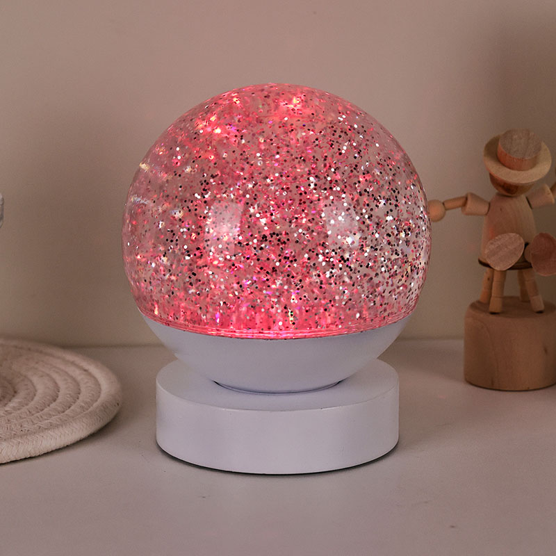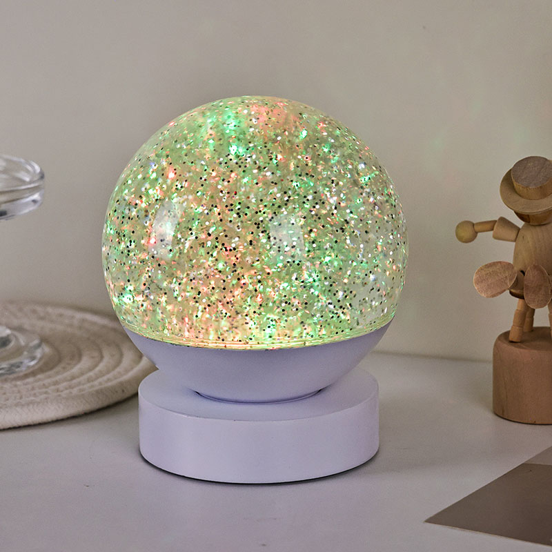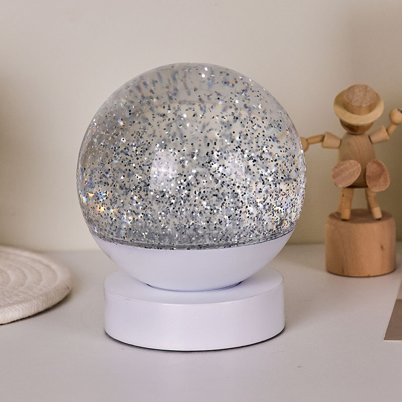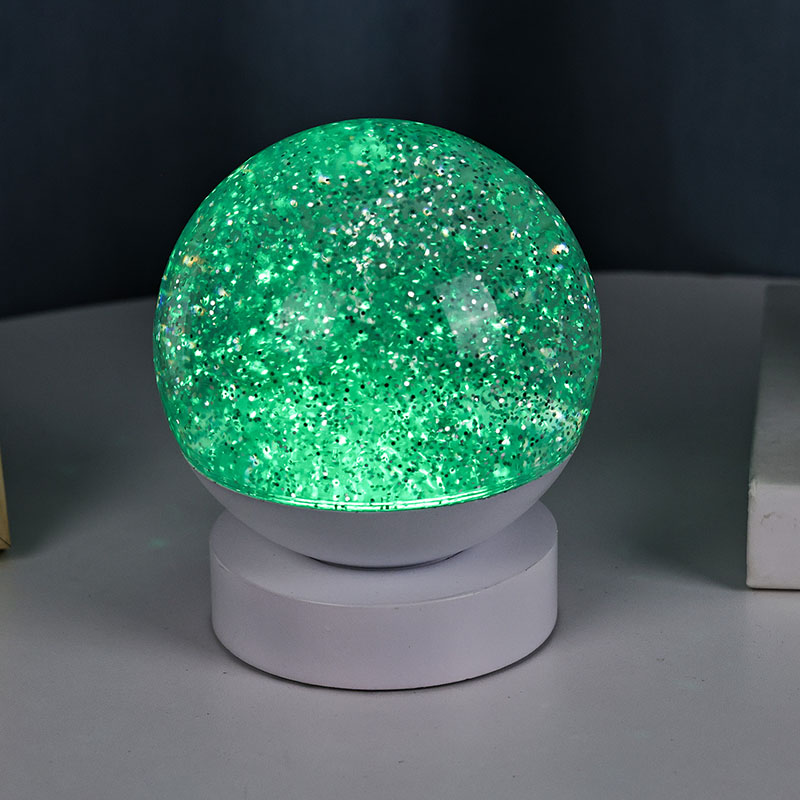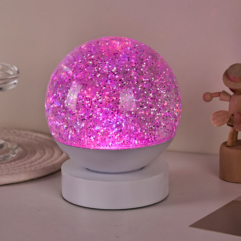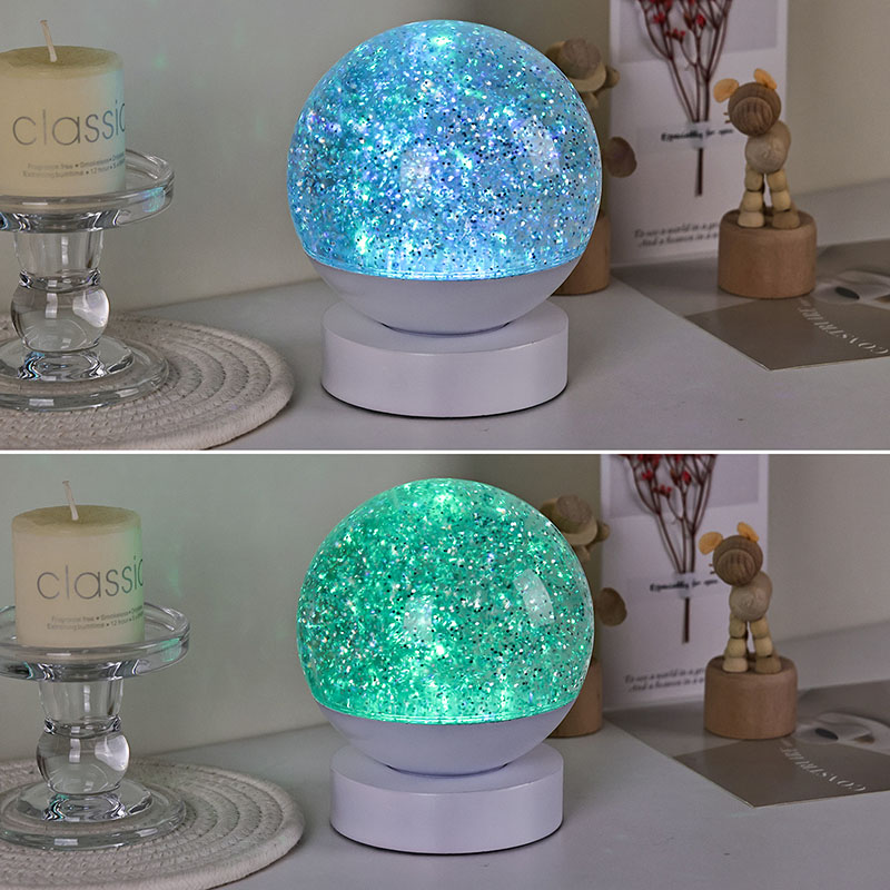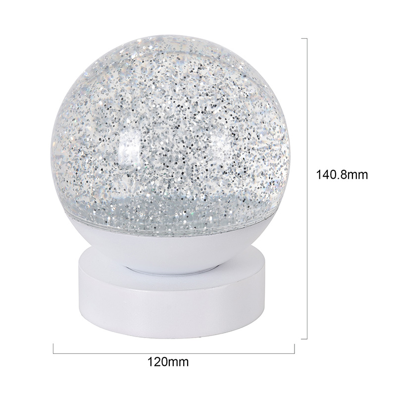 42 к 28,5 к 17,5 цмЛед РГБ Глиттер Децор лампа је креативан поклон дизајниран посебно за дечије собе, спаваће собе или свечане декорације, који савршено комбинује технологију и естетику. Лопта је испуњена провидном течношћу и безброј ситних светлуцавих честица. Када се светло упали, течност тече полако, а честице сјаја плешу, као да хватају светлуцаву галаксију на вашем длану. Са РГБ ЛЕД светлосним ефектима, боје аутоматски круже кроз седам нијанси – у распону од нежно розе и љубичасте до освежавајуће плаве и зелене, а затим до топле наранџасте и црвене – свака боја изазива различита емоционална искуства и ствара амбијент из снова.