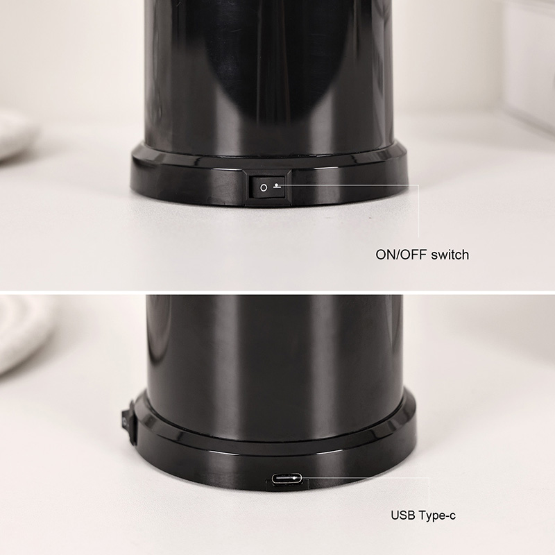 Направљена од висококвалитетне, издржљиве пластике, ова висока црна лампа има чврсту основу која спречава превртање, осигуравајући стабилност на столовима, полицама или ноћним ормарићима. Прозирна централна цев је отпорна на гребање и лако се чисти, одржавајући јасноћу током времена. Горњи поклопац је добро затворен како би се спречило цурење, док су унутрашње компоненте потпуно затворене ради безбедности.