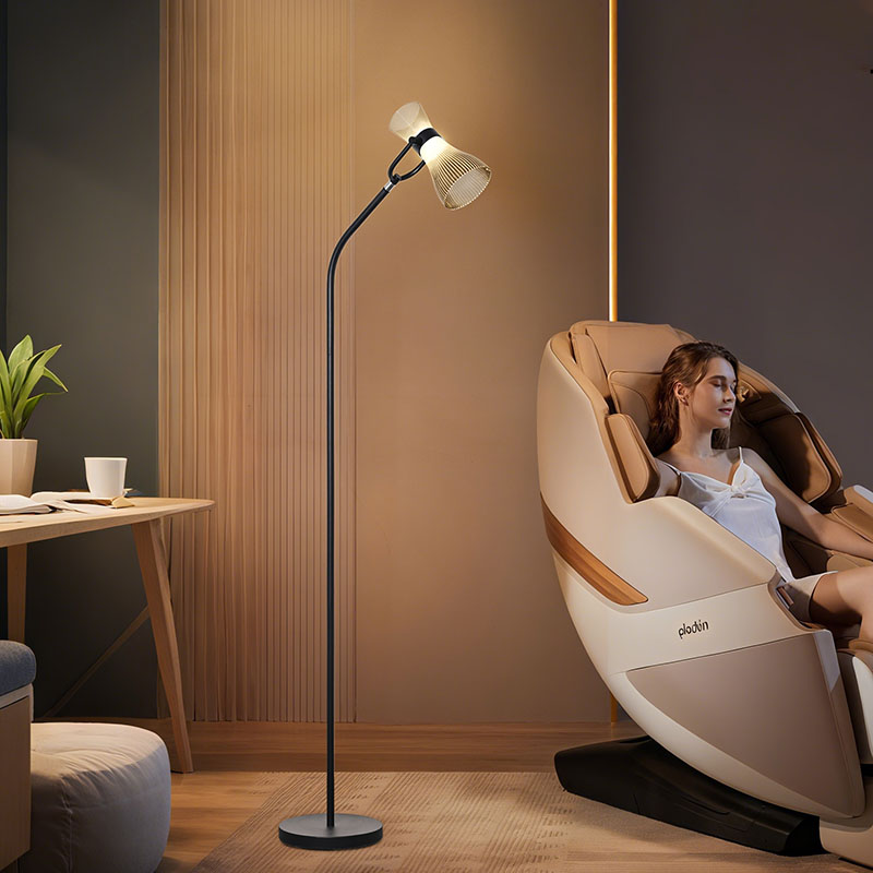 глатке и природне линије, показујући племениту и елегантну атмосферу. Стаклени абажур лампи не само да даје провидну и чисту текстуру, већ и ефикасно распршује светлост, чинећи светлост мекшом и равномернијом. Било да је постављена у дневну собу, спаваћу собу или радну собу, модерна лед подна лампа са стакленим сјенилом може савршено