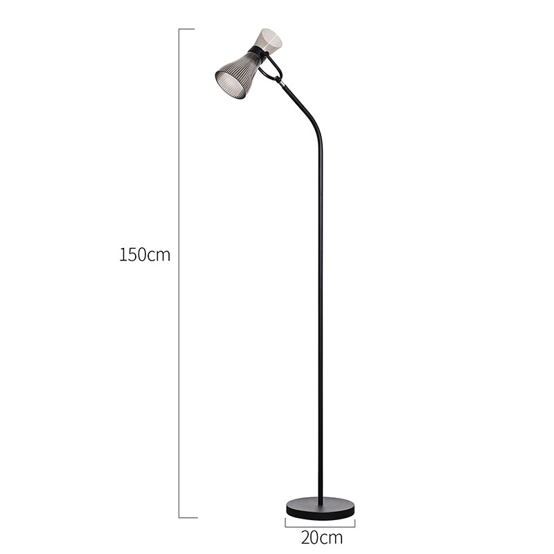 Ножни прекидач за затамњивањеМодерна лед подна лампа са стакленим сјенилом усваја минималистички концепт дизајна, са једноставним, али елегантним укупним обликом. Висина од 150 центиметара и пречник основе од 20 центиметара дају му довољну присутност, а да не заузима превише простора. Метална шипка и основа су фино полирани, са глатком и деликатном површином,