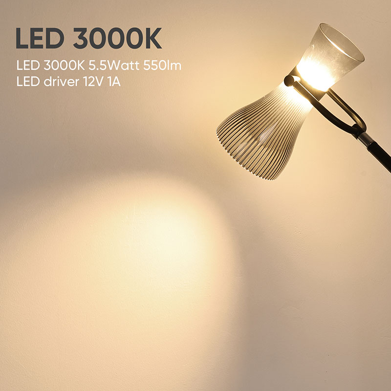 Модерна лед подна лампа са стакленим абажуром опремљена је напредним ЛЕД изворима светлости који емитују меку и јаку светлост, ефикасно штитећи ваше очи и смањујући умор и нелагодност изазване продуженом употребом очију.