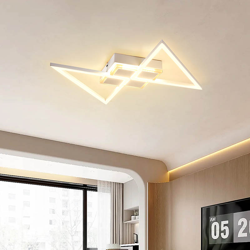 Топло светло такође наглашава архитектонске детаље и декор ваше сале, додајући дубину и димензију простору. Било да приређујете вечеру или једноставно уживате у мирној вечери код куће, модерни метални дијагонални троугласти лустер осигурава да ваша сала буде окупана топлим, привлачним светлом.