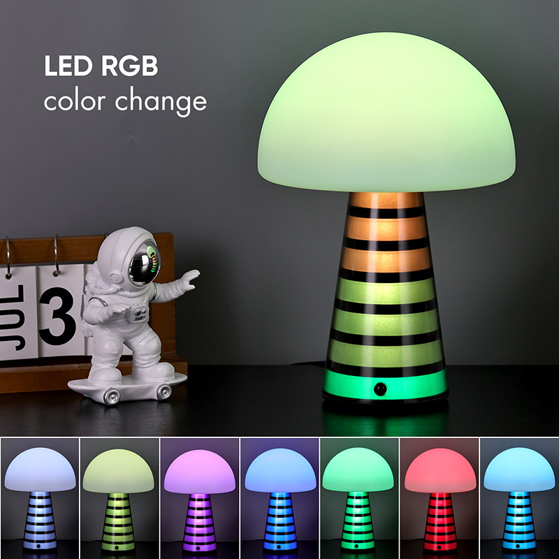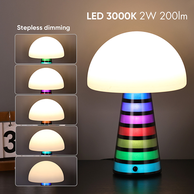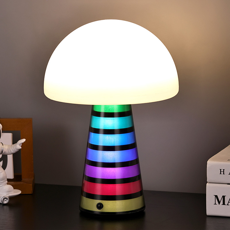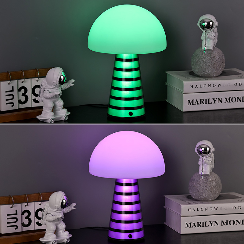 Диги РГБ ноћно светлоУкупан стил столне лампе је сладак, а ПВЦ материјал у комбинацији са дизајном у облику печурке је веома популаран међу децом. Глава лампе и стуб лампе могу да мењају боју, а боје се мењају наизменично, чинећи боје веома лепим. Штавише, столна лампа долази са топлом бојом подесивог интензитета светлости, која се може користити као лампа за осветљење. У дечијој спаваћој соби биће веома хармонично