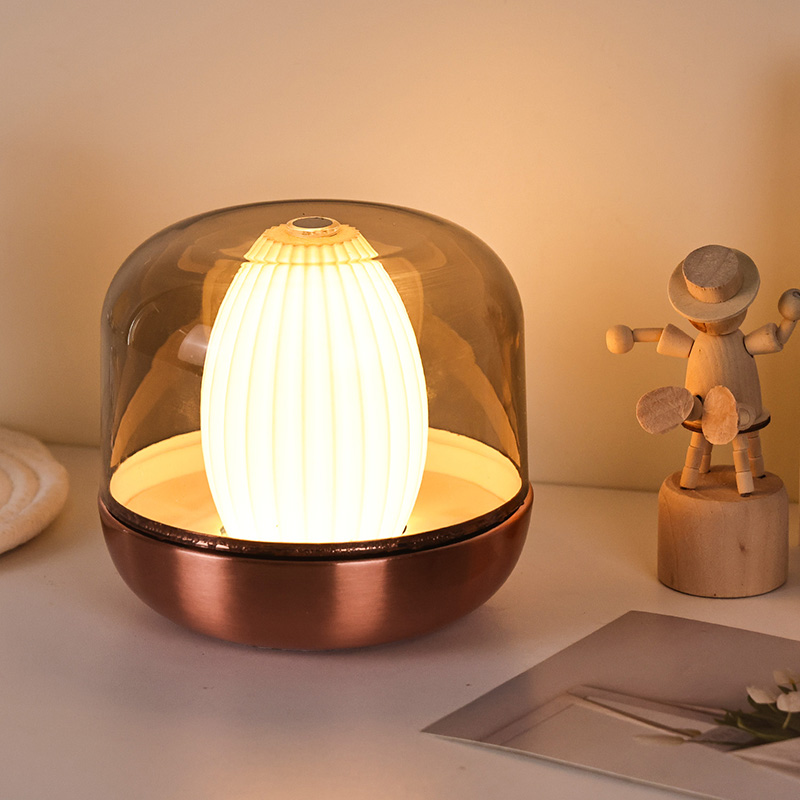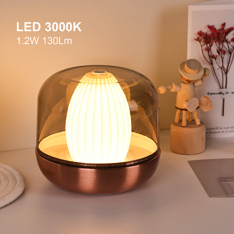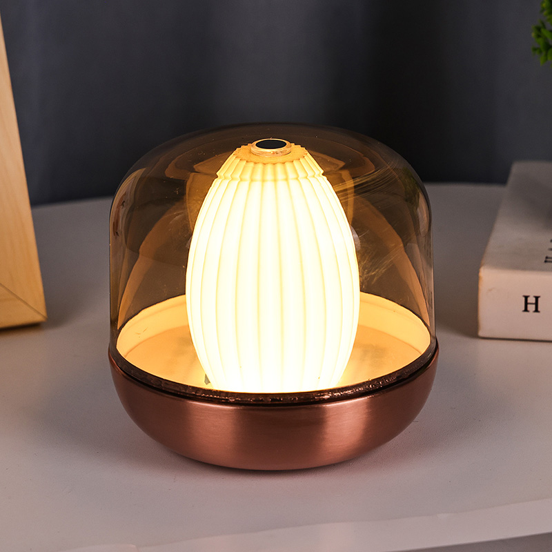 Дизајнерска инспирација овог топлог ноћног светла потиче од споја природе и архитектонске естетике. Са својим заобљеним и пуним укупним обликом, подсећа на пажљиво изрезбарени драги камен од ћилибара. Постављен на сто или сто, без напора постаје визуелна фокусна тачка. Спољни слој има поклопац високе провидности који не само да штити унутрашњи извор светлости, већ и ствара јединствене слојеве светлости и сенке путем преламања, стварајући визуелни ефекат из снова.