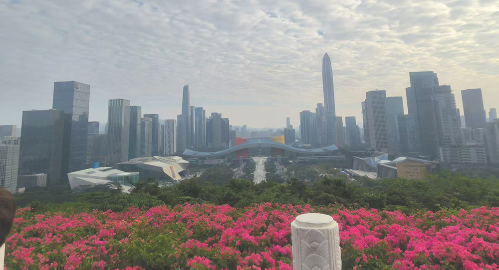 Након 20 минута пењања, сви су стигли до врха! Стојећи испред бронзане статуе друга Денг Сјаопинга, с погледом на ужурбани град Шенжен, испуњен сам емоцијама.