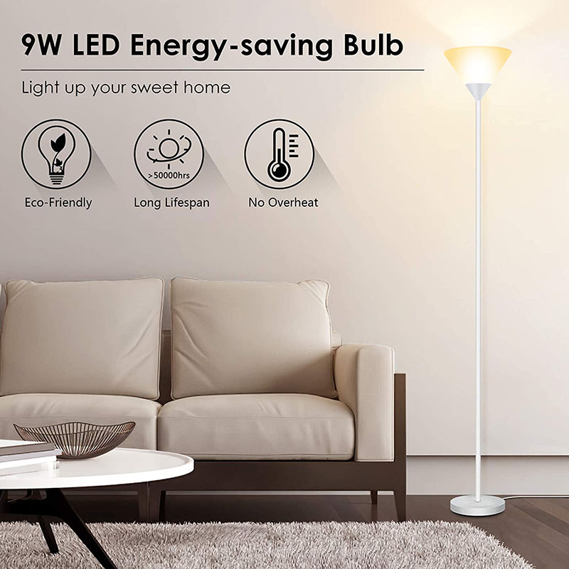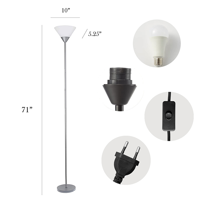 Израђена од висококвалитетних материјала, свестрана ЛЕД подна лампа има чврст метални оквир и издржљив пластични сјенило. Његов минималистички дизајн осигурава да се неприметно уклапа у сваки ентеријер, било модеран, традиционалан или еклектичан. Структура једне шипке лампе обезбеђује стабилност и чисту естетику, док конусни сјенило усмерава светлост према горе, стварајући пријатан амбијент.