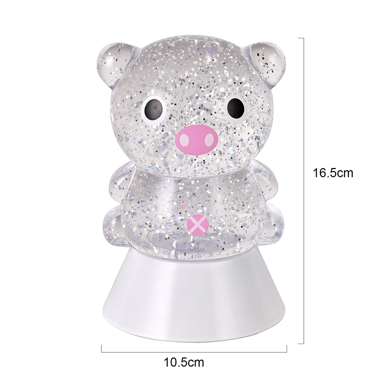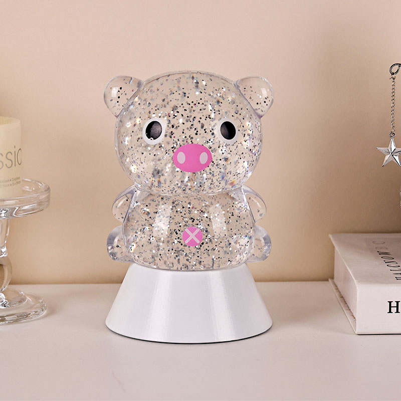 Пластика и електроникаУ пријатној ноћи, ћудљива и магична ноћна лампа може донети бескрајну топлину и машту у дечију собу. Ова декоративна ноћна лампа у облику „Дреами Пиг“, инспирисана симпатичним дизајном свиња из цртаног филма, комбинује динамичну технологију промене течности са светлуцавим ефектима како би створила креативан производ за кућно осветљење који спаја забаву, естетику и практичност. Идеалан је избор за дечије собе, спаваће собе, радни столови или као поклон за празнике.