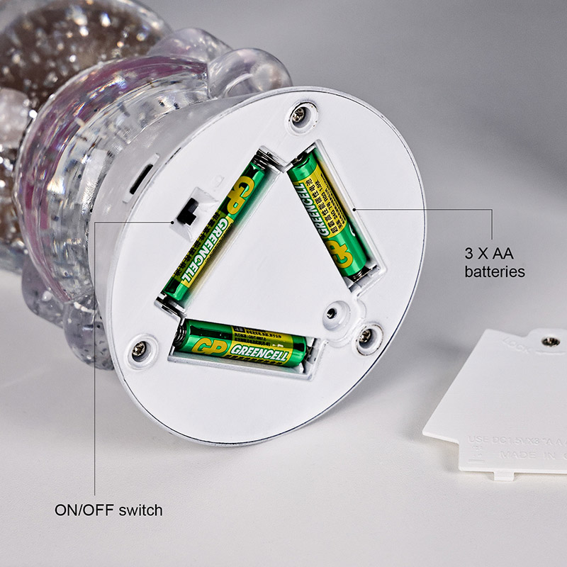 РГБ светлуцава стона лампа са свињским сенком има једноставан и елегантан дизајн беле основе на дну, који не само да побољшава укупну естетику већ и побољшава стабилност како би се спречило превртање. База укључује интерни одељак за батерије у који корисници могу лако да инсталирају три ААА батерије (нису укључене). Без потребе за прикључењем, нуди преносивост и идеалан је за постављање поред кревета, стола, креветића или током путовања. Дизајн прекидача је једноставан за коришћење, омогућава лаку контролу укључивања/искључивања једноставним додиром, што га чини безбедним и једноставним за руковање – посебно погодним за самосталну употребу деце.