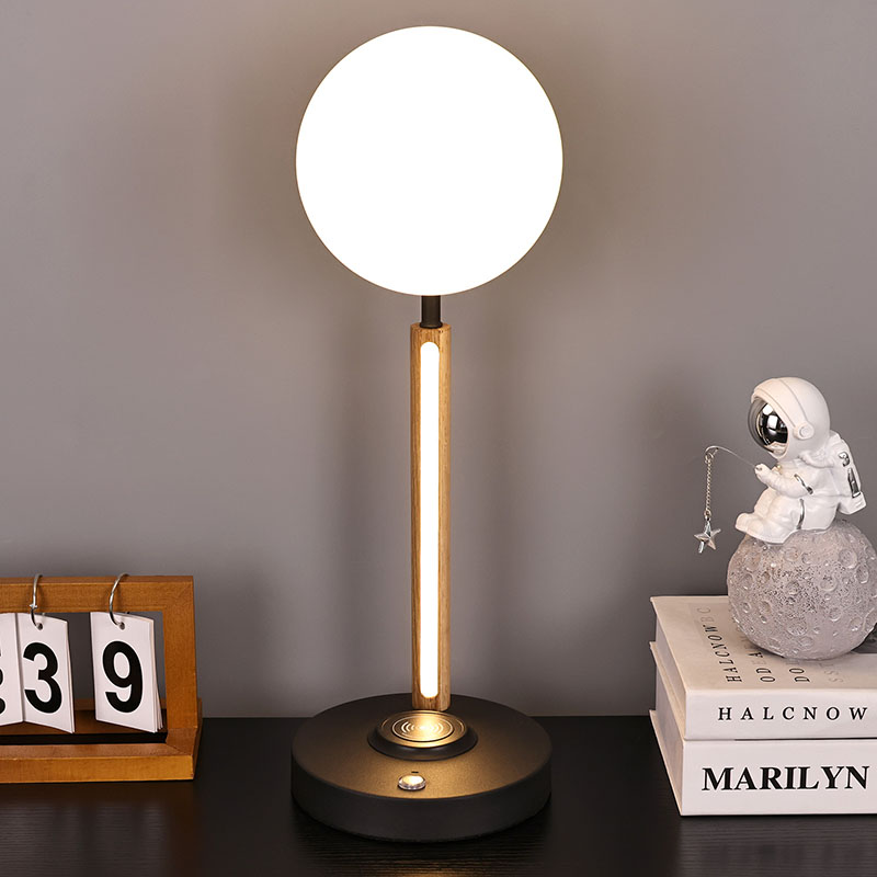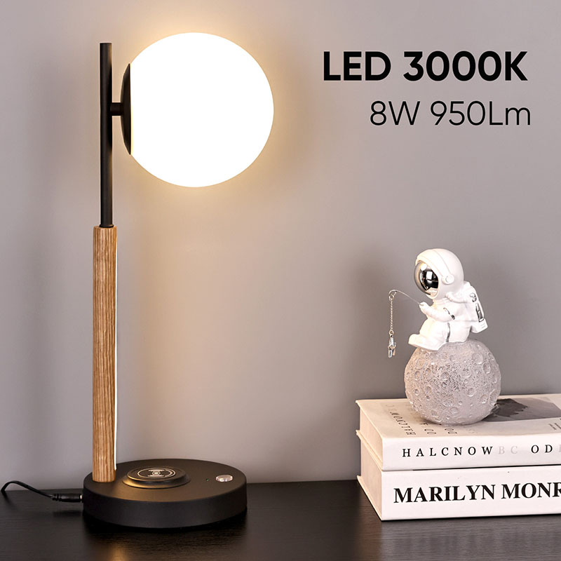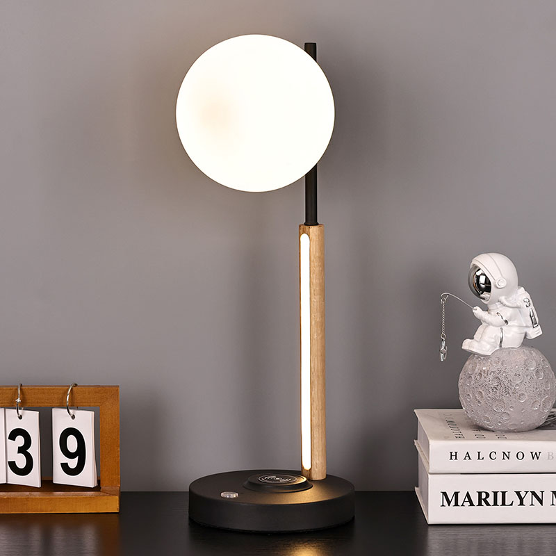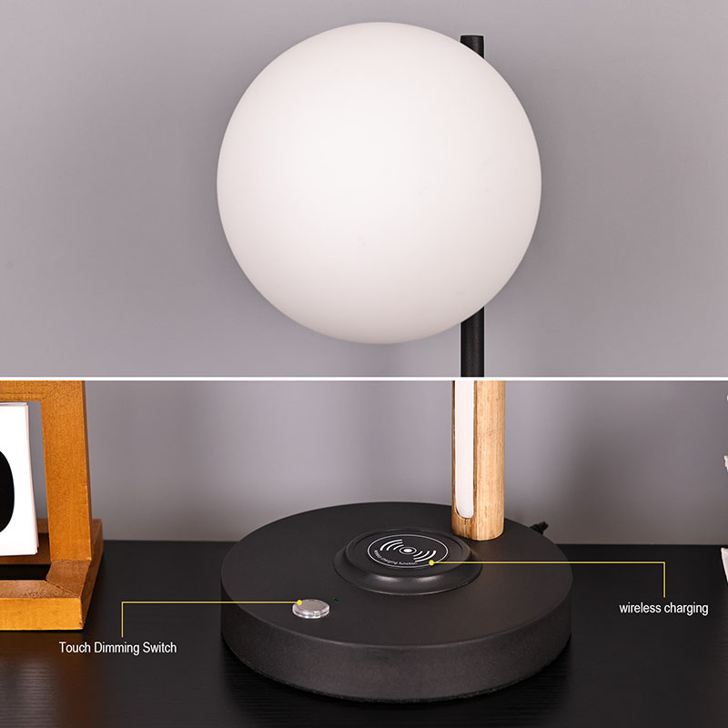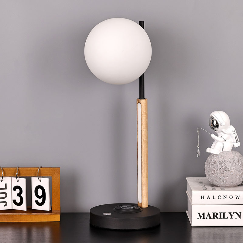 Ова мала столна лампа сферног стакла и дрвене лампе није само практичан алат за осветљење, већ и изузетан украс. Може се поставити у угао дневне собе, додајући модерну и уметничку атмосферу целом простору; Може се поставити поред ноћног ормарића у спаваћој соби, пратећи вас кроз сваку мирну ноћ; Такође се може поставити поред радног стола у радној соби, пружајући вам довољно и мекано радно светло.
