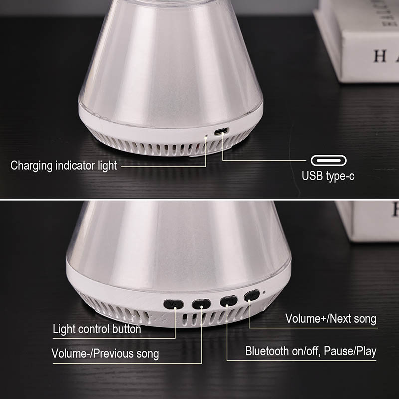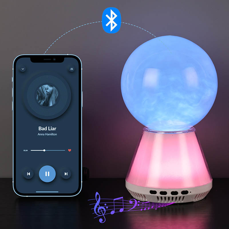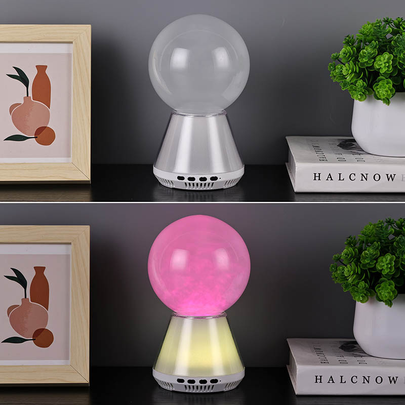 РГБ ЛЕД светлуцава лампа са блуетоотх контролом која комбинује ток течности у стакленој кугли у стање попут облака, синхронизоване промене боја између базе и течности и Блуетоотх конекцију за пуштање музике, дизајнирана је да створи сањив свет за вас. РГБ ЛЕД светлуцава лампа са блуетоотх контролом није само практично ноћно светло, већ и магично уметничко дело.