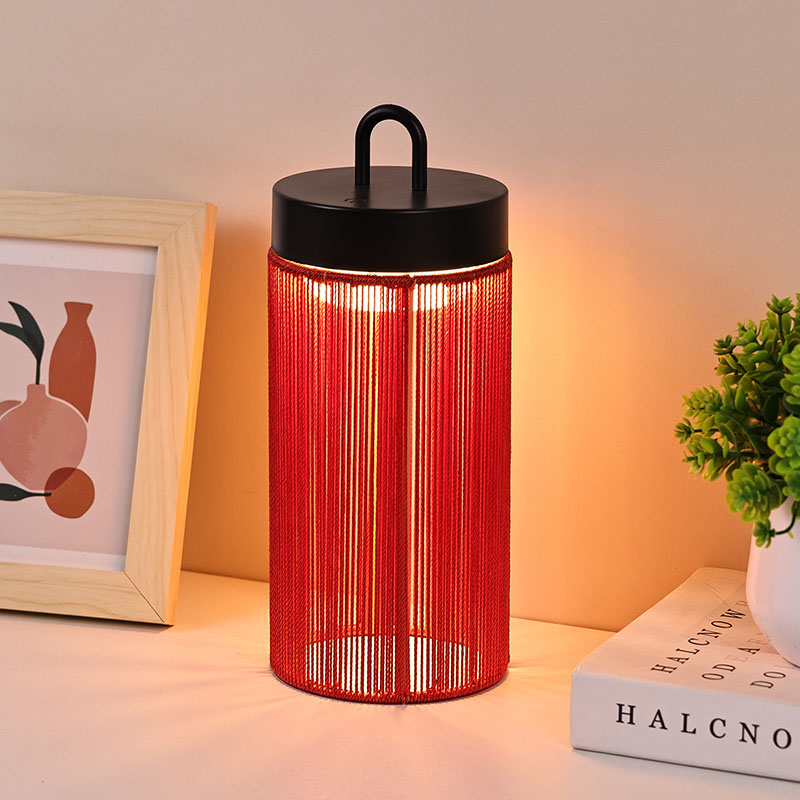 Целокупни дизајн: У облику цилиндра, са једноставним и глатким линијама, Специјална лед стона лампа са најлоном има модеран минималистички стил. Специјална лед стона лампа са најлонским обликом чини је стабилнијом када је постављена и погодном за ручне покрете. Подударање боја: Главни део је светло црвен, пружајући људима топло и живо визуелно искуство, што је лако