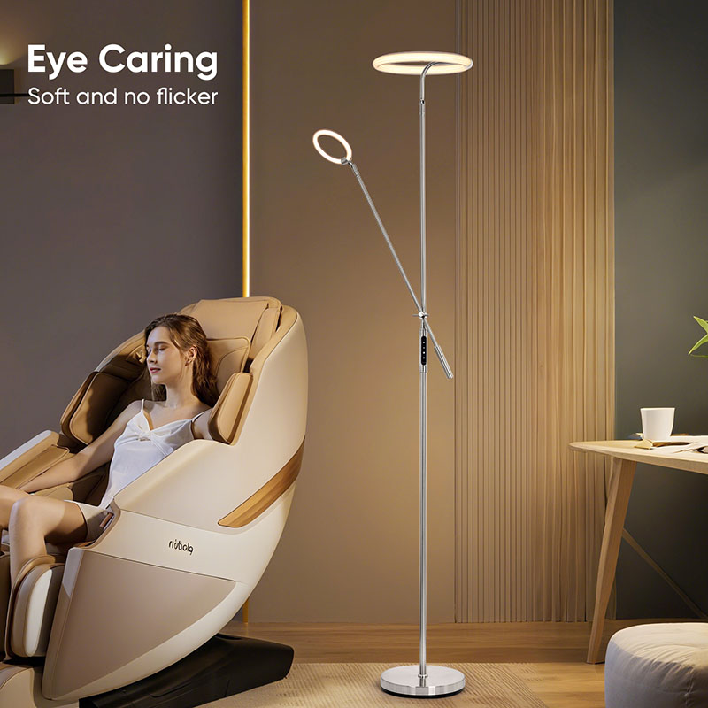 Да би задовољили ваше потребе за осветљењем у различитим сценаријима, стуб лампе и база ове подне лампе су опремљени са 3 нивоа функције подешавања интензитета светлости. Једноставним операцијама можете слободно подесити интензитет осветљења према различитим потребама и сценама. Без обзира да ли вам је потребна јака светлост за читање књига или желите меко осветљење за стварање романтичне атмосфере, стуб лампе и база ове подне лампе могу лако да испуне ваше захтеве.