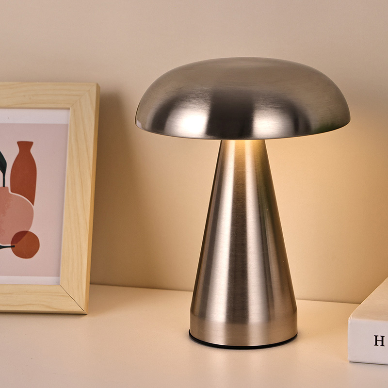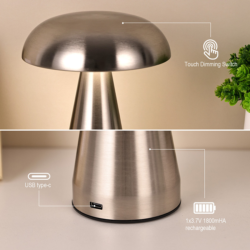Прекидач за затамњење на додирЛед столна лампа од целог метала са сенком од гљива је направљена од свих металних материјала и има веома посебан изглед дизајна. Имитира облик печурке и има светла подесива јачине урезана унутар печурке. Цела метална Лед столна лампа са сенком од печурака је погодна за постављање у дечијим собама у окружењу попут разговора. Цела метална Лед столна лампа са сенком од печурки добро допуњује дечији свет и пружа топло осветљење за собу. За лаку мобилност, столна лампа такође има уграђену пуњиву батерију, која се може користити било када и било где