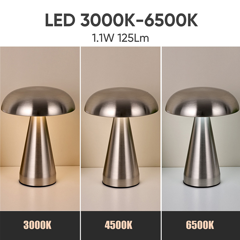 Цела метална лед стона лампа са шампињоном има 3000К (топло светло) 4500К (природно светло) 6500К (бело светло) 3 промене боје светла